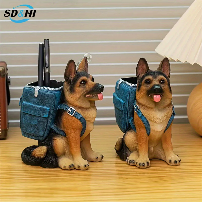 Desktop German Shepherd Pen Holder Resin Crafts
